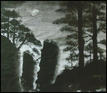 Nuit en ForêtSur papier de riz absorbant - 39cm (L) sur 39cm (H)(Xie Yi & Paysages)